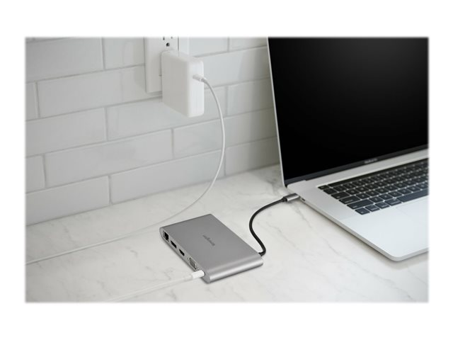 Les professionnels trouvent qu'ils sont plus productifs lorsqu'ils utilisent plusieurs écrans. Ainsi, de plus en plus travaillent à différents endroits avec différents écrans (souvent anciens). Une station d'accueil mobile compacte est alors nécessaire pour prendre en charge ces configurations. La station d'accueil mobile USB-C UH1440P tire le meilleur parti des anciens écrans, vous permettant de connecter jusqu'à deux écrans DP/HDMI ou DP/VGA. Universellement compatible, cette station d'accueil USB-C sans pilote prend en charge un transfert d'alimentation jusqu'à 85 W, idéal si vous ne voulez pas vous déplacer avec un bloc d'alimentation externe encombrant. À la place, vous pouvez utiliser l'alimentation USB-C de votre ordinateur portable pour recharger ce dernier tout en alimentant la station d'accueil. Cette solution 10 en 1 comprend trois ports USB-A, une prise audio de 3,5 mm, des emplacements pour cartes SD et micro SD, et un port Gigabit Ethernet.