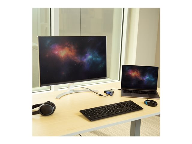 Si vous disposez d'un écran ou d'un vidéoprojecteur VGA, vous pouvez le connecter à cet adaptateur afin de créer un poste de travail à deux écrans : celui de votre ordinateur portable et l'écran externe supplémentaire ou le vidéoprojecteur. Avec un écran supplémentaire, vous êtes plus efficace au travail et pouvez gérer plusieurs tâches plus efficacement.
