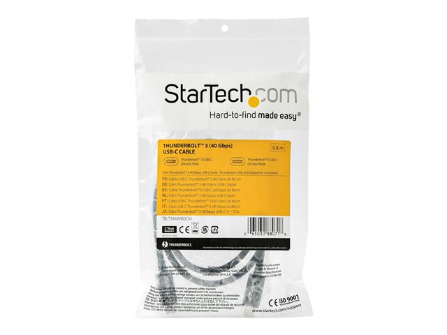 StarTech.com 2.6ft (80cm) Thunderbolt 3 Cable, 40Gbps, 100W PD, 4K/5K Video, Thunderbolt-Certified, Compatible w/ TB4/USB 3.2/DisplayPort
