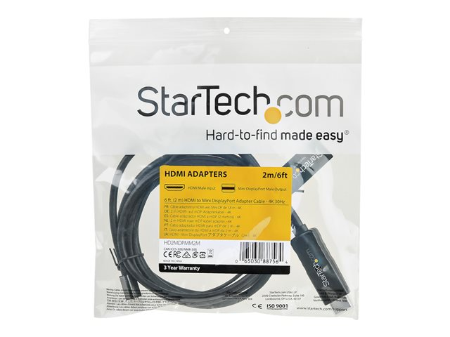 HDMI to mDP Converter (HD2MDPMM2M) - Câble vidéo/audio - HDMI, USB (alimentation uniquement) mâle pour Mini DisplayPort mâle - 2 m - noir - support 4K