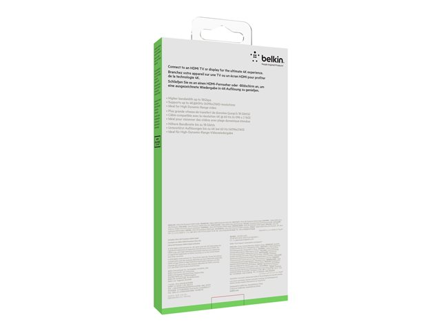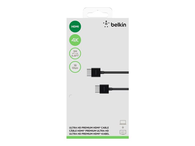 Description du produit Belkin Premium Series câble HDMI - 2 m Câble Câble HDMI Longueur 2 m Connecteur HDMI - mâle Connecteur (deuxième extrémité) HDMI - mâle Fonctions Support 4K -