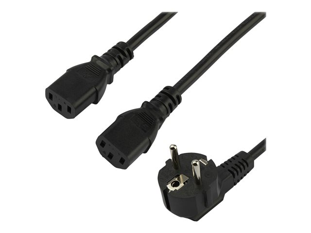 Cordon secteur en Y Schuko vers C13 de 2 m - Prise européenne vers 2x C13 - Câble d'alimentation - power CEE 7/7 (M) pour power IEC 60320 C13 - CA 250 V - 10 A - 2 m - noir