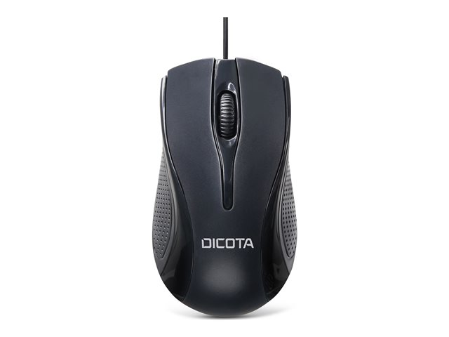 Description du produit DICOTA - souris - USB - noir Type de périphérique Souris Technologie de connectivité Filaire - USB Couleur Noir Orientation Droitiers et gauchers Dimensions (LxPxH) 6.5 cm x 11.4 cm x 3.6 cm Poids 60 g Technologie de détection de mouvements Laser Nombre de boutons 3 Résolution 1200 dpi Garantie du fabricant Garantie de 2 ans -