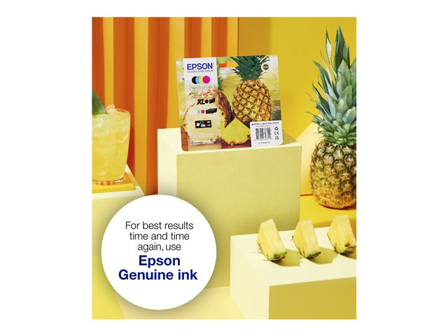 Les encres quatre couleurs séparées d'Epson sont fiables et parfaitement adaptées à l'impression quotidienne. Une cartouche abordable est disponible pour chaque type d'utilisateur dans des tailles standard et très haute capacité proposées sous forme séparée ou en tant que multipacks. Identifiez-la facilement en magasin en recherchant le visuel Ananas.