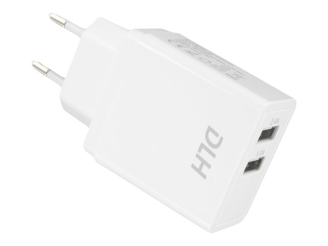 Description du produit DLH DY-AU2313W adaptateur secteur - USB - 12 Watt Type de Produit Adaptateur secteur Couleur Blanc Type de prise Total 2: USB Tension requise CA 100-240 V Tension fournie 5 V Courant électrique max. 2.4 A Alimentation fournie 12 Watt Garantie du fabricant 1 an de garantie -