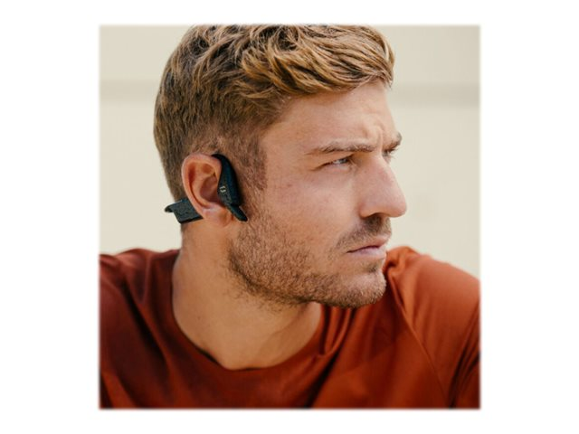 Grâce à la technologie de conduction osseuse, profitez d'un confort d'écoute optimal tout en conservant les oreilles libres et restez ainsi conscient de votre environnement. En open space, dans les transports ou en mouvement, vivez l'incroyable expérience d'un son venu de l'intérieur qui ne vous coupe pas de l'extérieur.