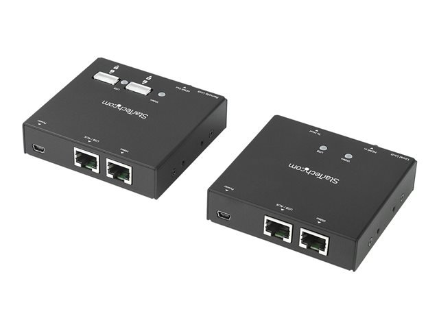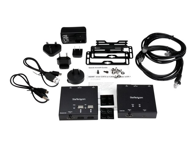 Ce kit d'extendeurs HDMI vous permet de transmettre votre source vidéo HD 1080p vers votre écran HDMI distant à une distance pouvant aller jusqu'à 50 m au moyen de câbles CAT6 blindés. Cet extendeur comporte un hub USB 2.0 à 4 ports intégré, qui vous permet aussi de connecter quatre périphériques USB distants sur le site de votre écran.