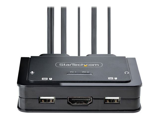 StarTech.com 2-Port Hybrid USB-C HDMI Cable KVM Switch, 4K 60Hz, Compact KVM with 6ft/1.8m USB-A/HDMI/Audio & 4ft/1.2m USB-C Integrated Host Cables, Bus Powered
