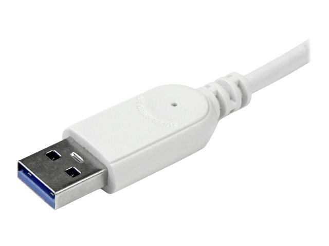 Ce hub comporte un câble intégré de 98 cm, ce qui est plus long que ce que la plupart des hubs classiques peuvent offrir. Le câble plus long vous permet de disposer le hub et vos appareils exactement à l'endroit désiré. Il vous permet aussi de connecter le hub à votre ordinateur portable ou à votre tablette quel que soit l'endroit où se trouve le port USB 3.0 de l'ordinateur portable.